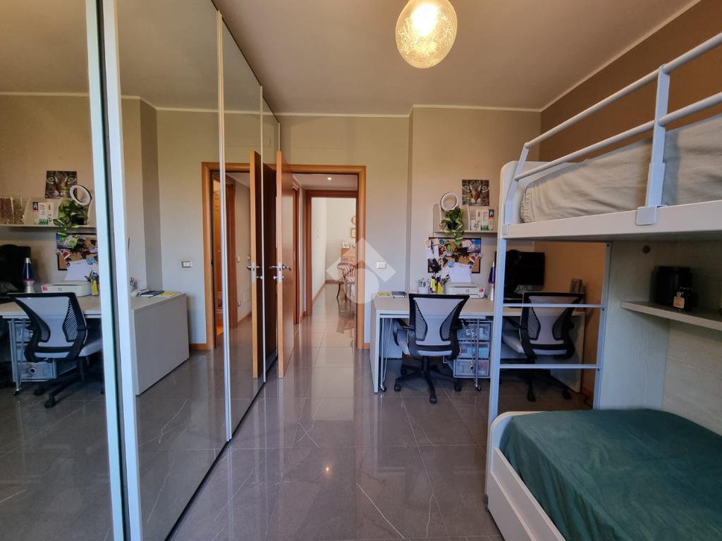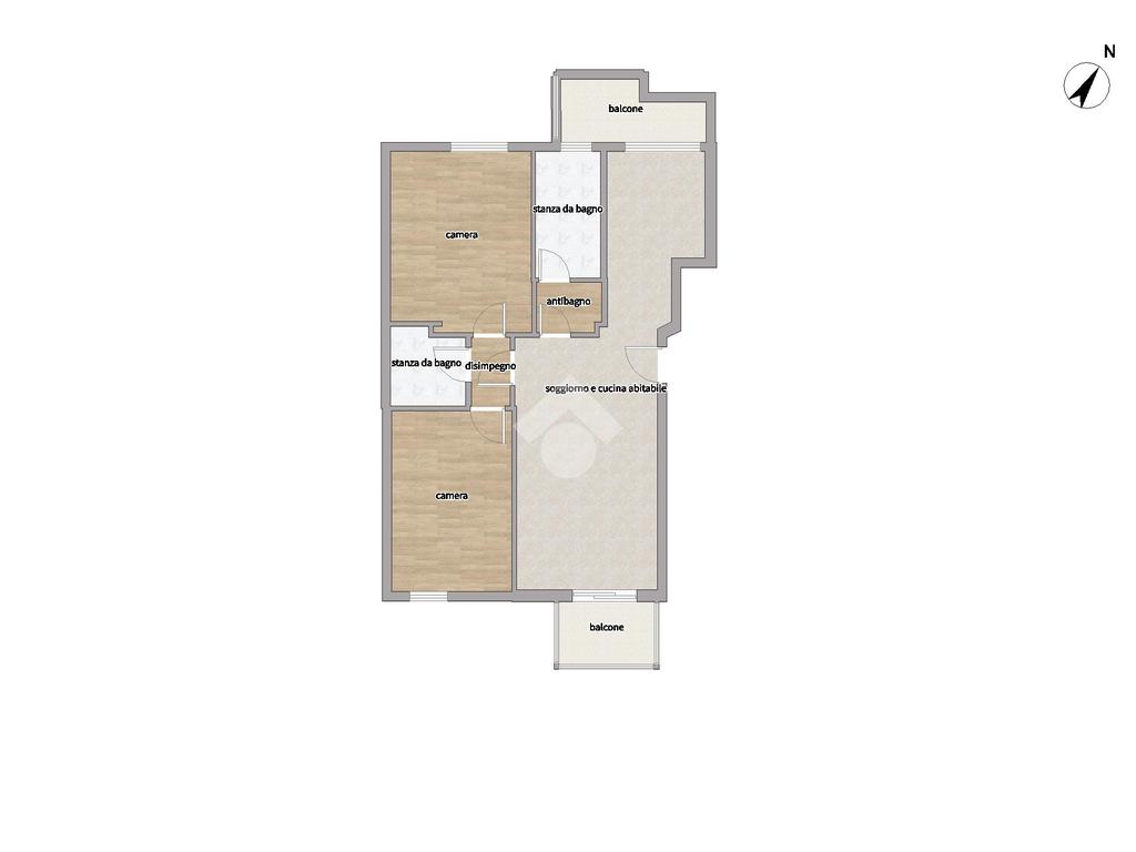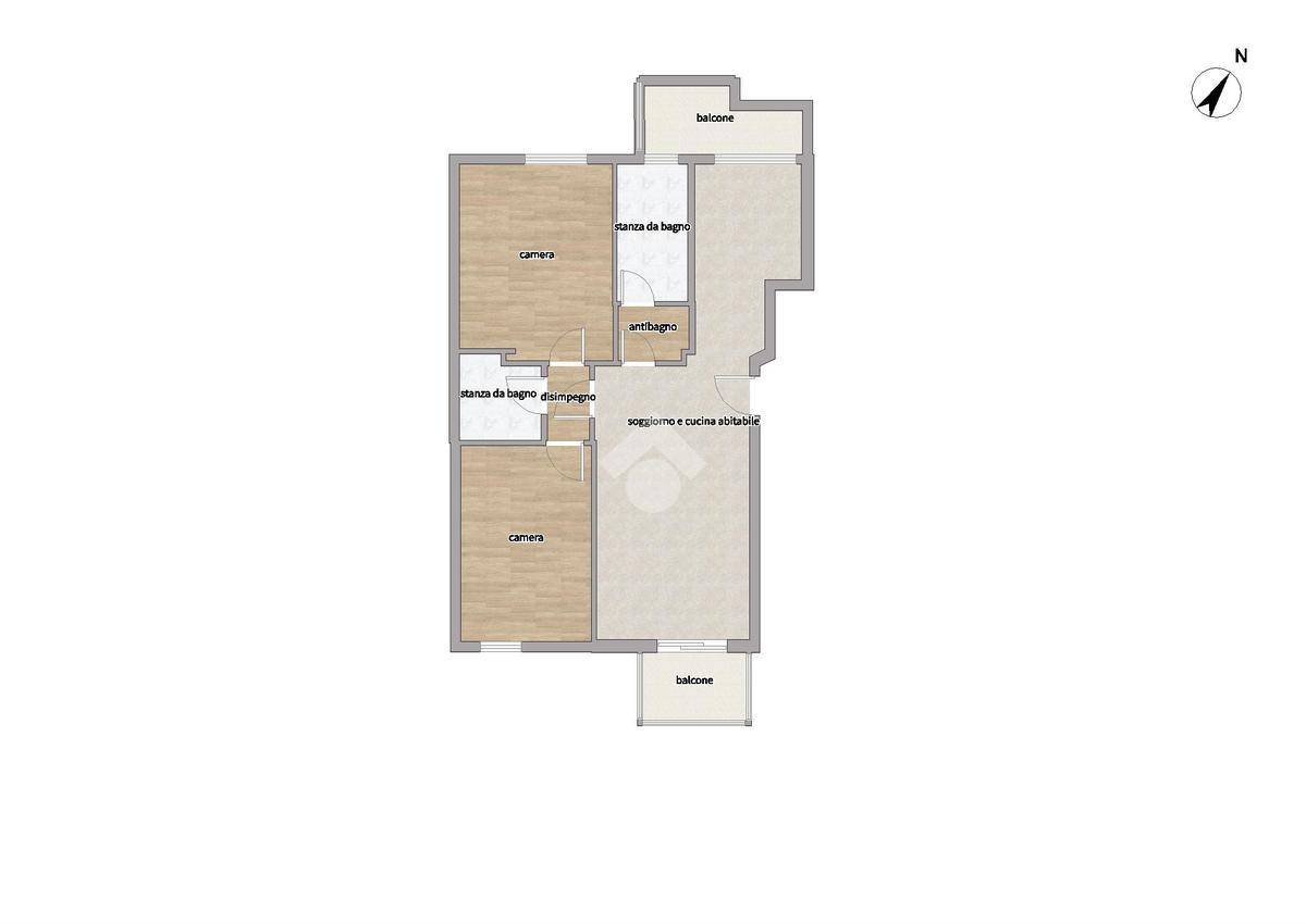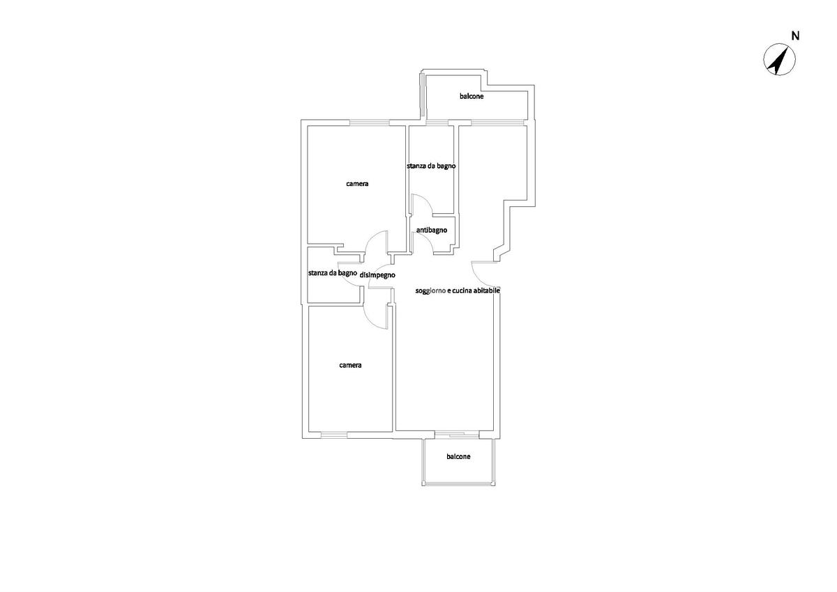 Dall'ingresso ci accoglie subito la zona giorno, sulla sinistra, soggiorno con accesso ad un balcone di buona metratura e sulla destra la cucina abitabile con un secondo balcone, bagno finestrato con doccia e antibagno. La zona notte è invece suddivisa in due camere da letto (in una delle quali verrà realizzata una cabina armadio) e bagno cieco con wc sanitrit e doccia. Ripostiglio in quota.