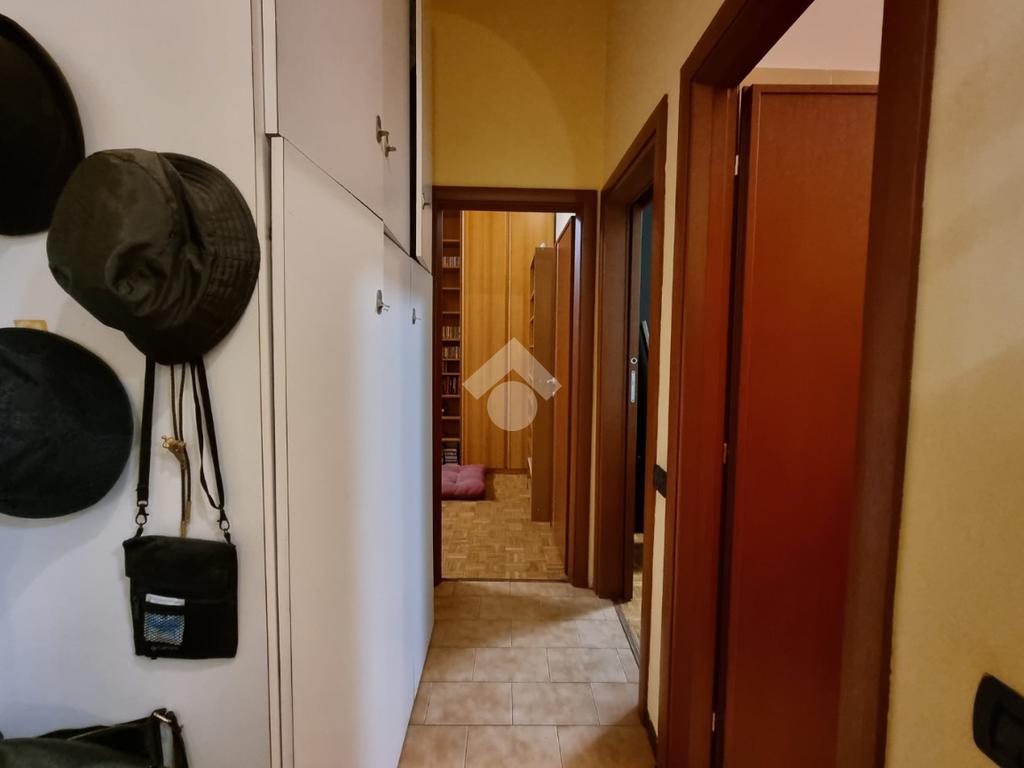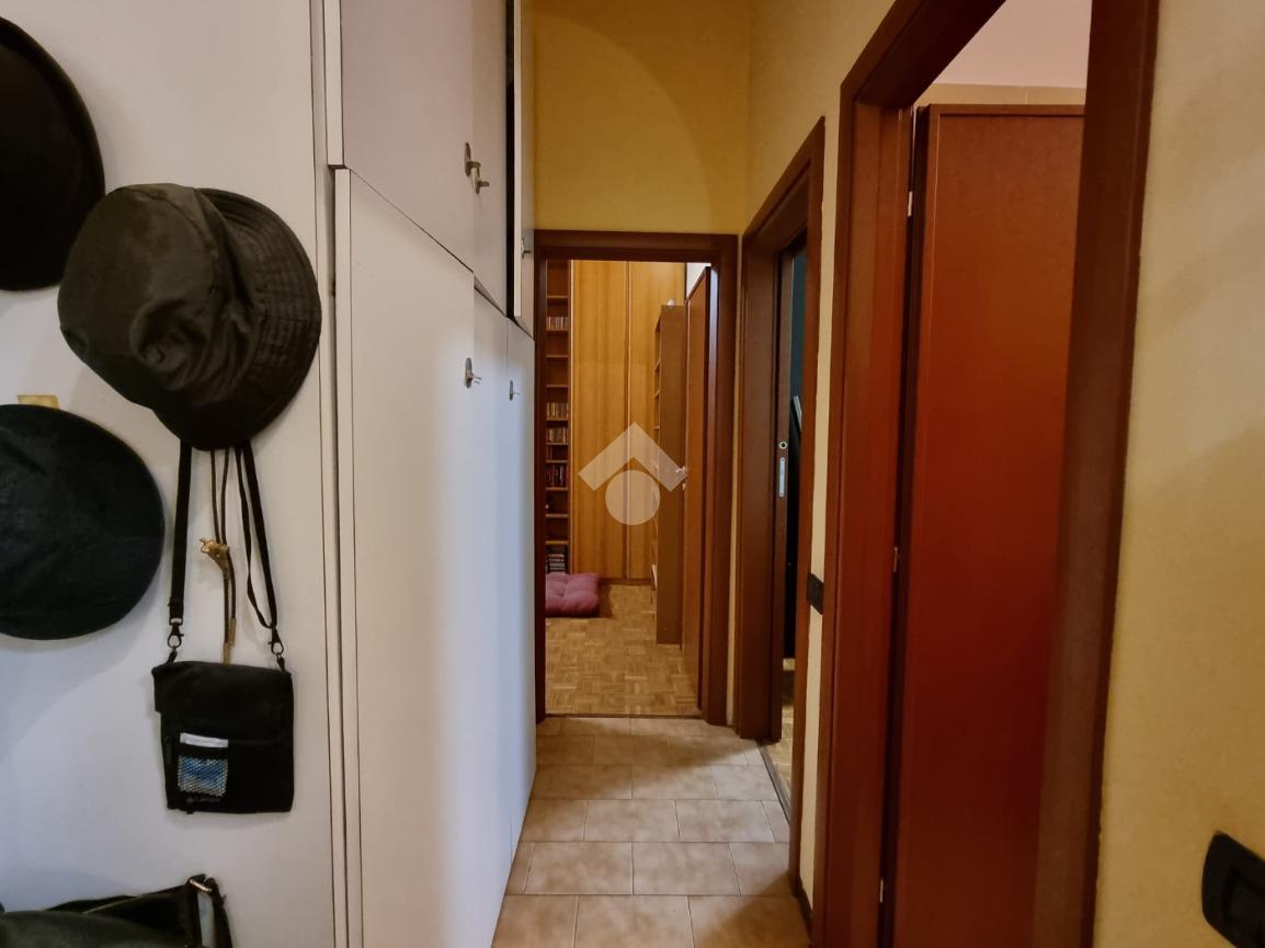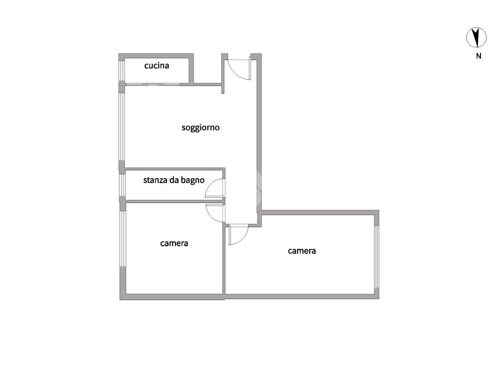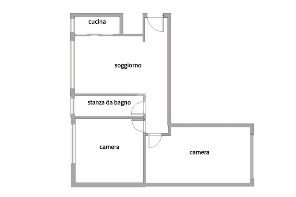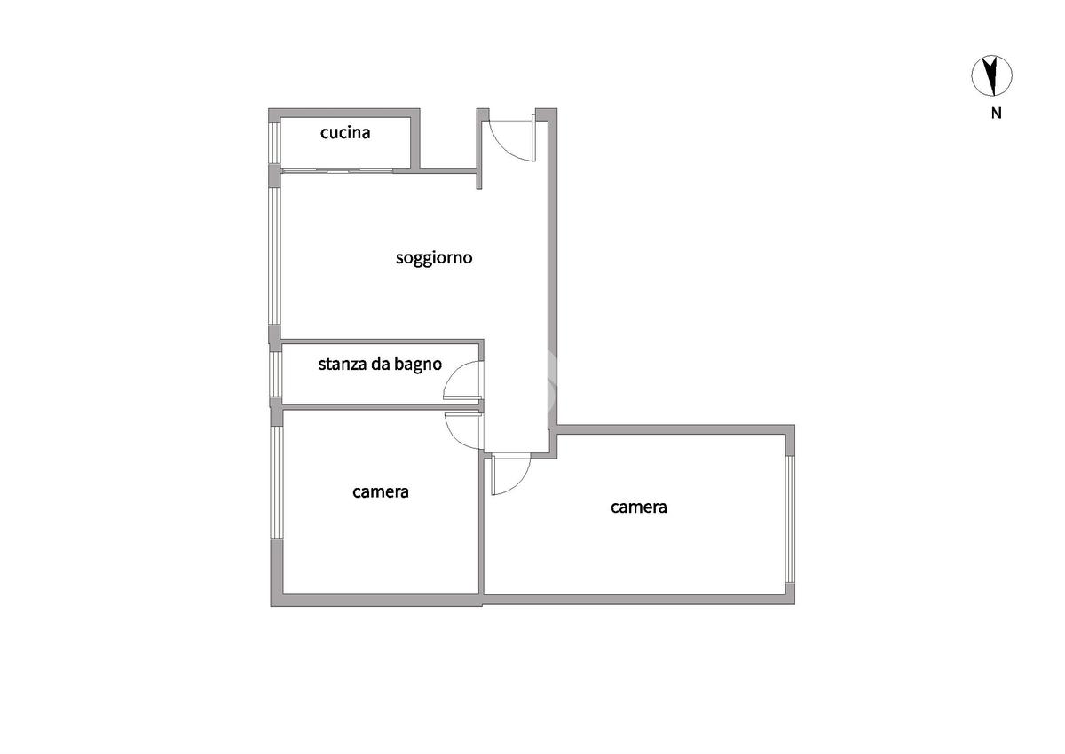 Ci accoglie un corridoio d'ingresso dove sulla destra si sviluppa la zona giorno composta da soggiorno e cucinino; proseguendo dal corridoio succitato troviamo la zona notte con due camere da letto e il bagno finestrato con la doccia.