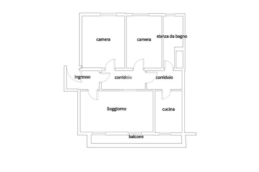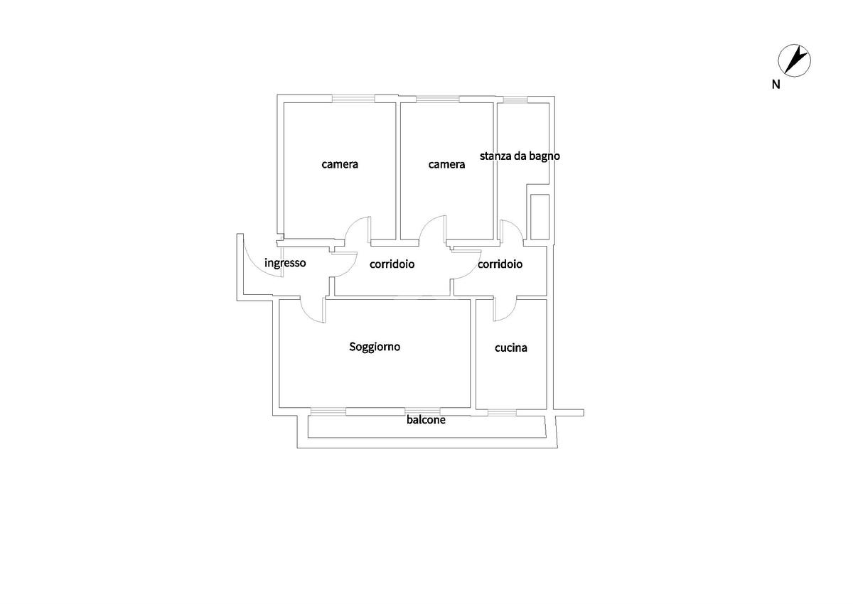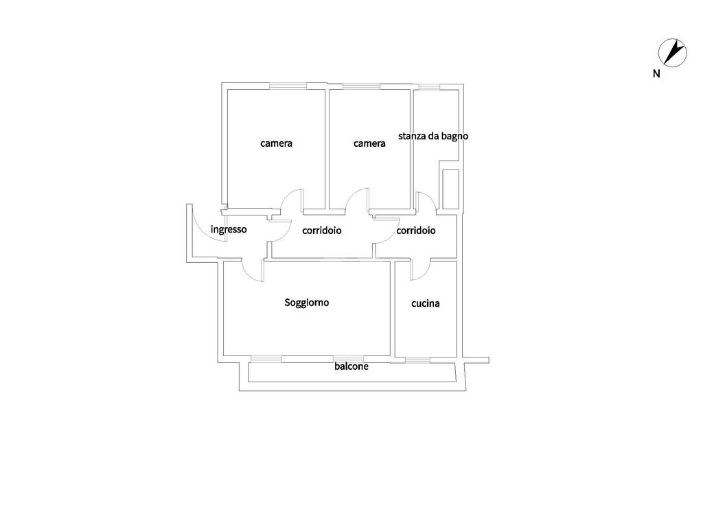 Ci accoglie in disimpegno d'ingresso dove di fronte troviamo il soggiorno con accesso al balcone; cucina abitabile con accesso al medesimo balcone, due camere da letto e bagno finestrato con doccia.